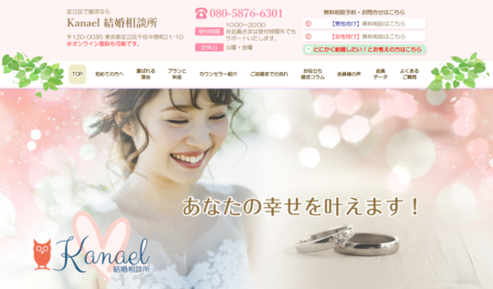 Kanaelは東京都足立区に拠点を構えてはいますが、場所にとらわれない婚活支援を提供することで、多くの成婚実績を築いています。